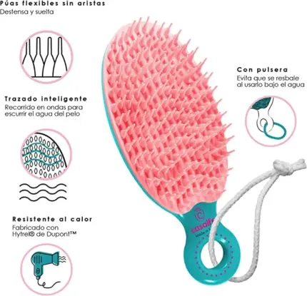 Púas flexibles sin aristas. Previene la rotura del cabello y las puntas abiertas.